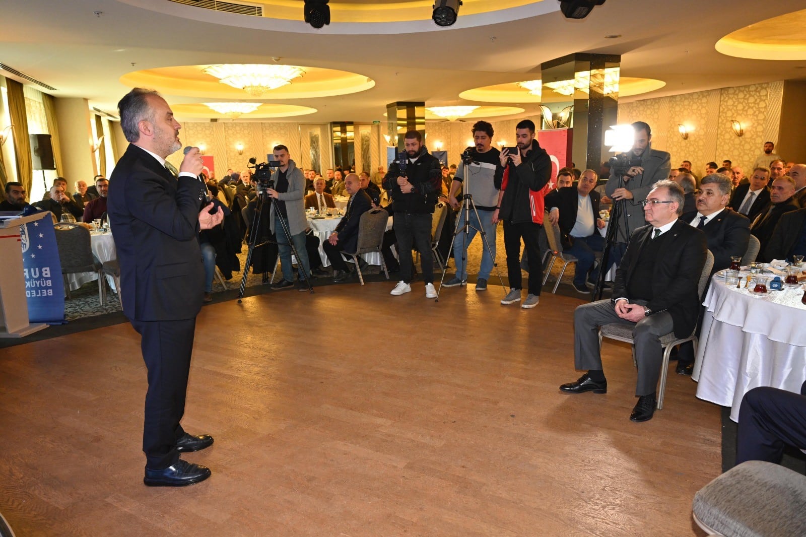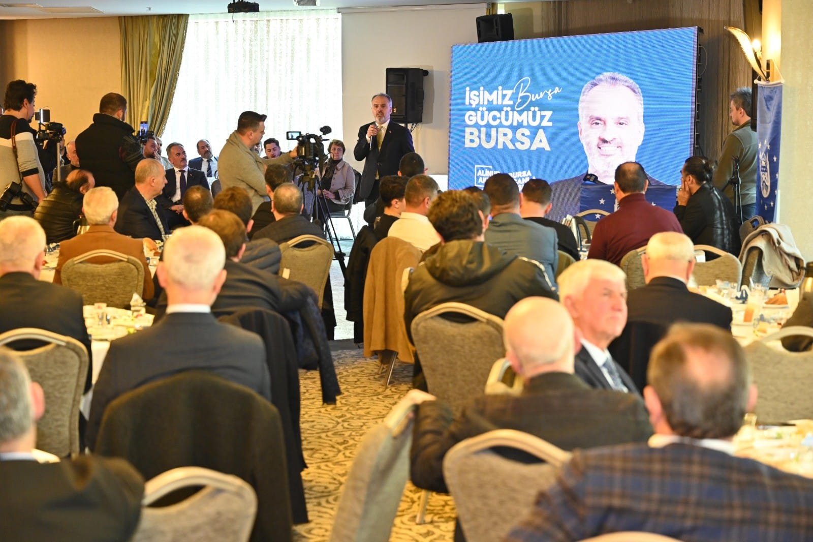 Bursa Büyükşehir Belediye Başkanı Alinur Aktaş, Gemlik ilçesinde sivil toplum kuruluşları, meslek odaları ve hemşehri dernekleri temsilcileri buluştu. Ramada Otel’deki toplantıya, AK Parti Gemlik Belediye Başkan adayı Refik Yılmaz, AK Parti ve MHP ilçe başkanları, siyasi parti temsilcileri, meclis üyeleri ve muhtarlar katıldı. Görevlerin gelip geçici olduğunu, aslonanın ise dava olduğunu söyleyen Bursa Büyükşehir Belediye Başkanı Alinur Aktaş, Gemlik’e en iyi hizmetlerin gelebilmesi adına Refik Yılmaz ile birlikte çok güzel işler yapacaklarını dile getirdi. Karşılarında derdi Bursa ve Türkiye olan bir muhalefet göremediklerini belirten Başkan Alinur Aktaş, rakibinin gittiği her yerde kentsel dönüşüm konuşmasına rağmen 540 bin nüfuslu ilçede 20 sene belediye başkanlığı yaptığı sürede bir tane yaptığı kentsel dönüşüm çalışması gösteremediğini anlattı. İnsanların bir tane kentsel dönüşüm yapan CHP’li belediye görmediğini dile getiren Başkan Aktaş, “Gemlik’te belediye başkanı kentsel dönüşüme niyetlendi. Konuştular ama ortada icraat yok. Burada en azından konuşuldu. Mudanya ve Nilüfer’de konuşulmadı bile. Ağustos böceği gibi geçirdiler 5 seneyi. Bizim ise Arabayatağı, Ulus, Değirmenönü, Karapınar gibi 14 tane devam eden kentsel dönüşüm çalışmamız var. Hanlar Bölgesi’ndeki dönüşüm projesine doğru olduğunu bildikleri halde ‘evet’ diyemediler. Tarihi ayağa kaldırıyoruz ama ‘hayır’ dediler. Bunların bir vizyonu, öngörüleri yok. Belediye önüne gelerek ‘kentsel dönüşüm istemiyoruz’ diyerek eylem yapıyorlar. ‘Ne istiyorsunuz? Görüşünüz, alternatifiniz var mı?’ diye soruyoruz. Sadece ‘istemiyoruz’ diyorlar. Bizler kentsel dönüşüm yapacağız ama kimsenin gönlünü yıkmadan, ümitlerini, hayallerini yıkmadan, değişimi ve dönüşümü sağlayacağız” diye konuştu.