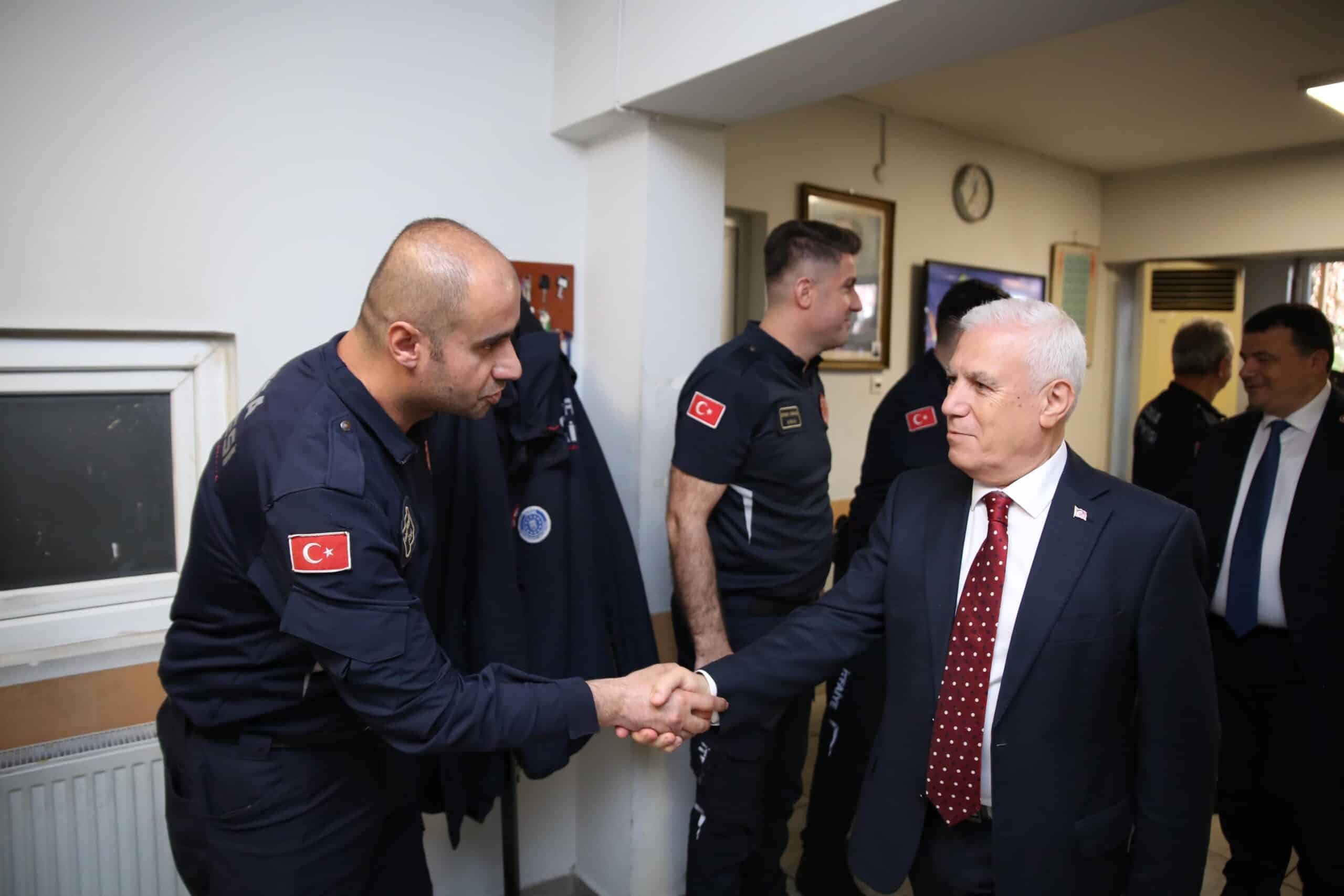 Ramazan Bayramı’nda toplumun her kesimiyle bir araya gelerek bayramlaşan ve vatandaşların sorunlarına yerinde çözüm üreten Bursa Büyükşehir Belediye Başkanı Mustafa Bozbey, 7/24 kesintisiz hizmet veren Büyükşehir Belediyesi çalışanlarını da unutmadı. Zabıta, İtfaiye ve Mezarlık Hizmetleri çalışanlarına bayram ziyaretinde bulunan Başkan Bozbey, görev başındaki personele bayram şekeri ikram etti. Başkan Mustafa Bozbey’e CHP Bursa Milletvekili Hasan Öztürk, meclis üyeleri ve Büyükşehir Belediyesi bürokratları eşlik etti.