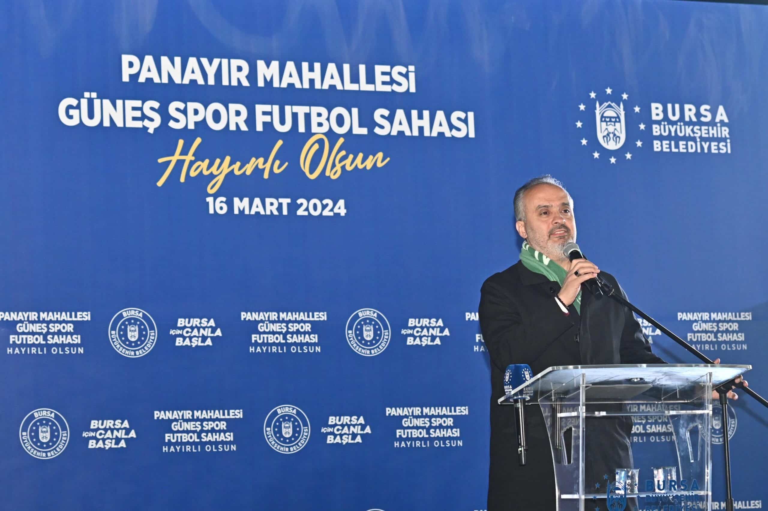 Panayır Güneş Spor Kulübü Başkanı Şafak Yıldırım, halı saha tesisini mahalleye kazandıran Büyükşehir Belediye Başkanı Alinur Aktaş’a, kendilerine her zaman destek veren Milletvekilleri Refik Özen ve Ahmet Kılıç’a, Osmangazi Belediye Başkanı Mustafa Dündar’a teşekkür etti.