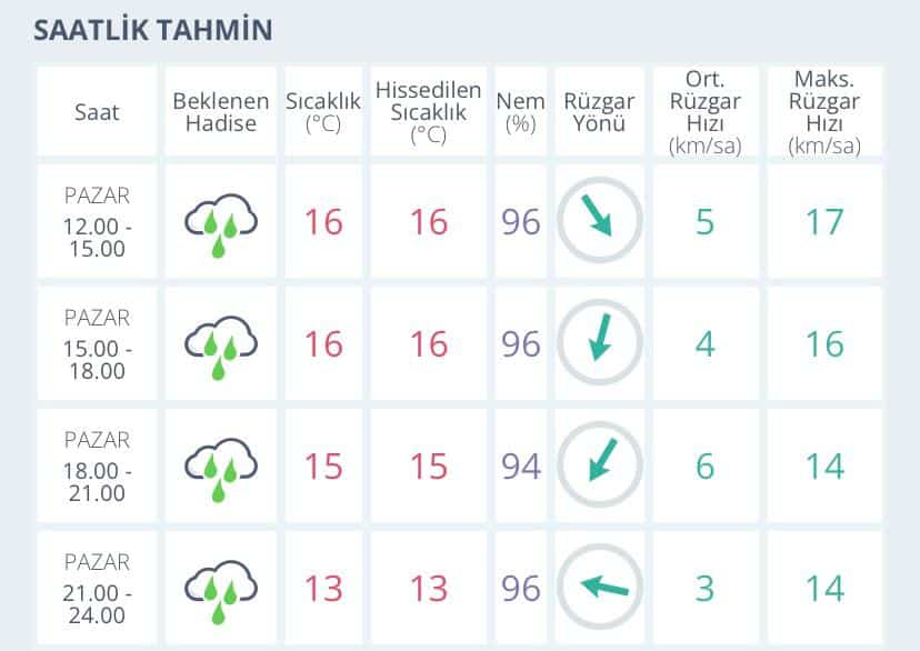 Şehirde yaşanan su krizi sebebiyle Bursalılar dört gözle yağmuru bekliyor. Meteoroloji Genel Müdürlüğü’nün yayınladığı günlük hava tahmini raporuna güre 19 Ekim Pazar günü gün boyunca yağış etkili olacak . Sıcaklık 16-12 derece arasına düşecek.