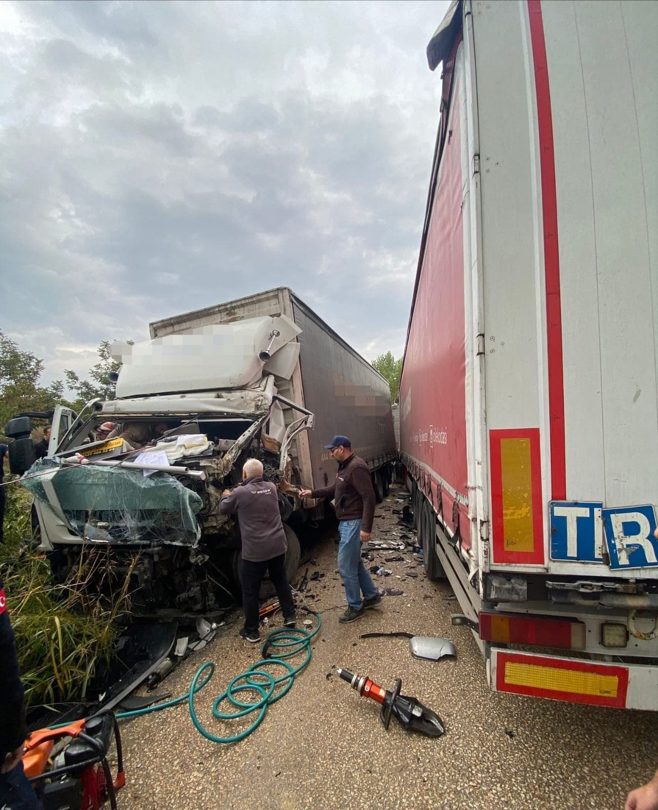 Çarpışmanın etkisiyle Kamyon sürücüsü Emrullah B.(39) kabinde sıkıştı. Çevredeki vatandaşların ihbarı üzerine olay yerine 112 jandarma ve itfaiye arama kurtarma ekipleri sevk edildi. Sıkışan sürücü araçtan çıkarılarak yapılan ilk müdahalenin ardından Ambulansla İnegöl Devlet Hastanesine kaldırıldı.