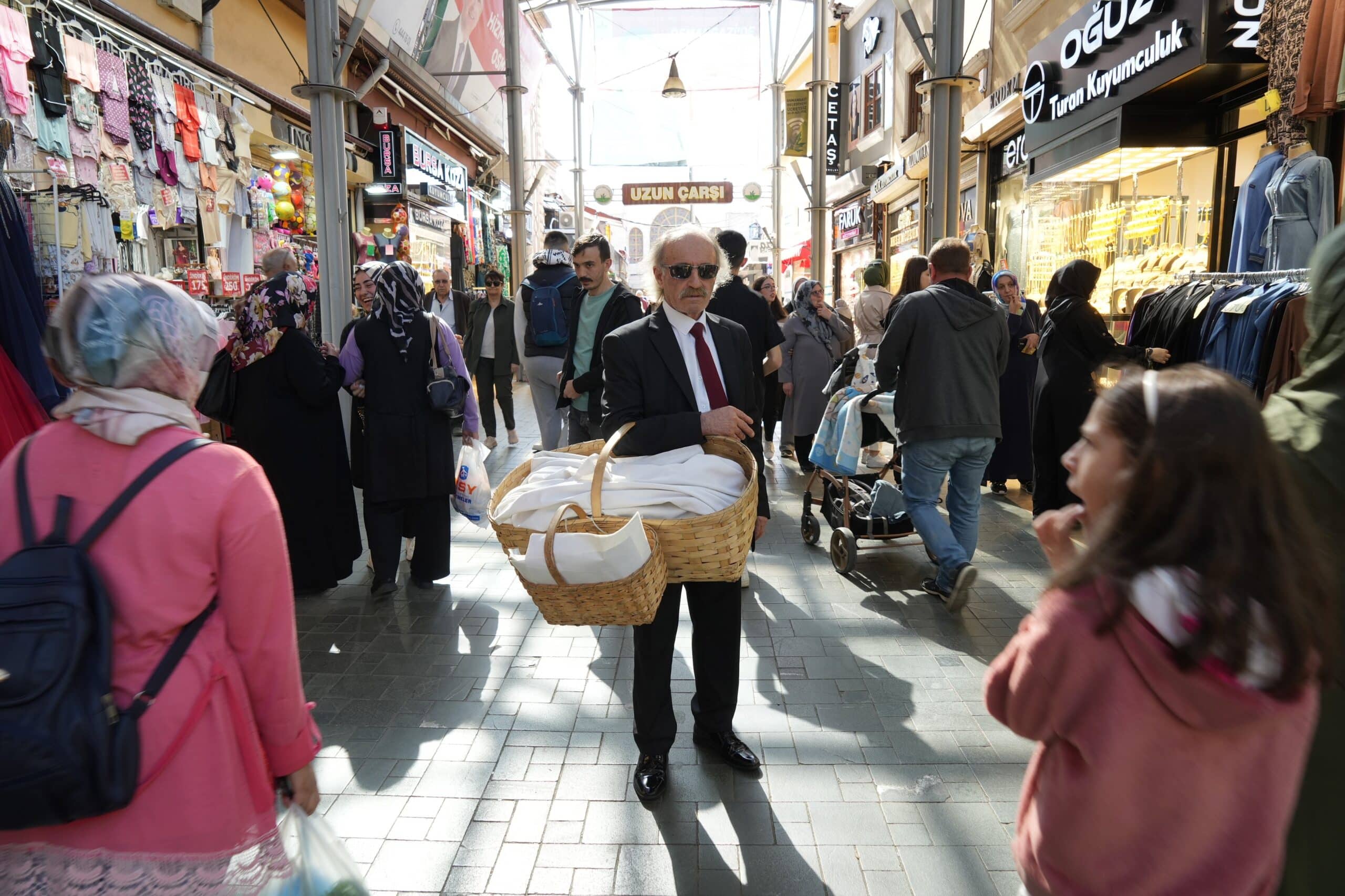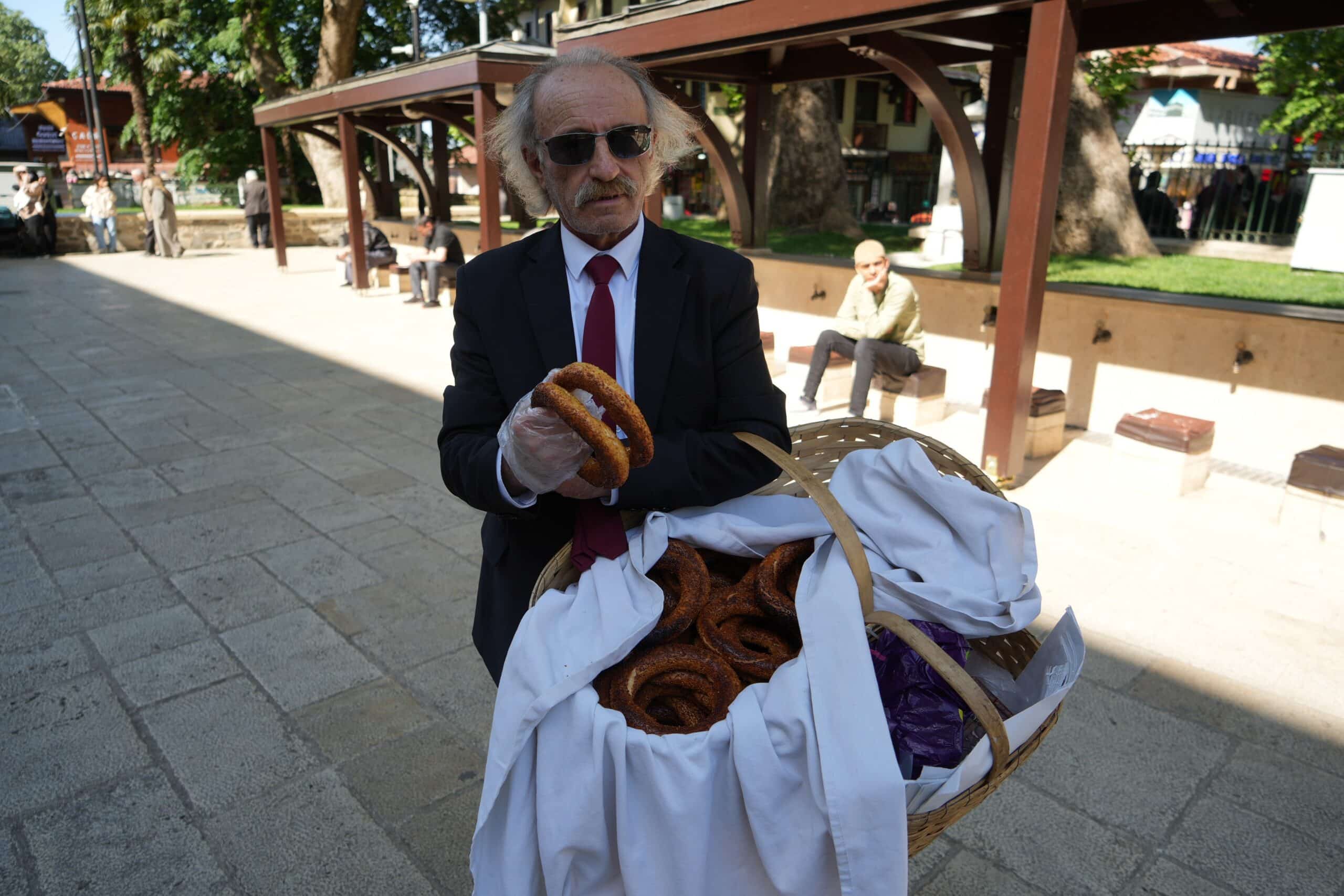 Bursa’da “Kravatlı Simitçi” olarak tanınan Ahmet Berksun (65), öğrenciyken yaptığı simitçiliği, kamudan emekli olduktan sonra da yapmaya karar verdi. Memurluk günlerinde giydiği takım elbiseyi, emekliliğinde de çıkarmayan Berksun, bu şekilde Bursa’nın tarihi noktalarında koluna taktığı sepetiyle simit satmaya başladı. Şıklığının yanı sıra renkli kişiliği ile de çarşı esnafının gönlünde taht kuran Berksun’u ilk görenler fotoğraf çektiriyor.