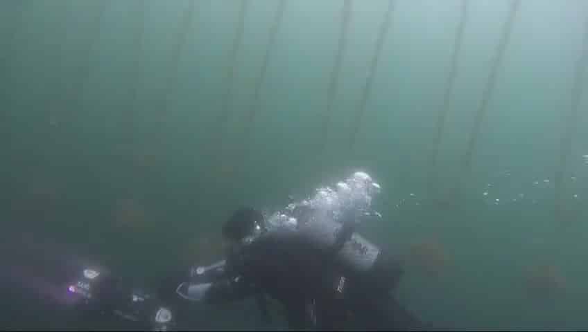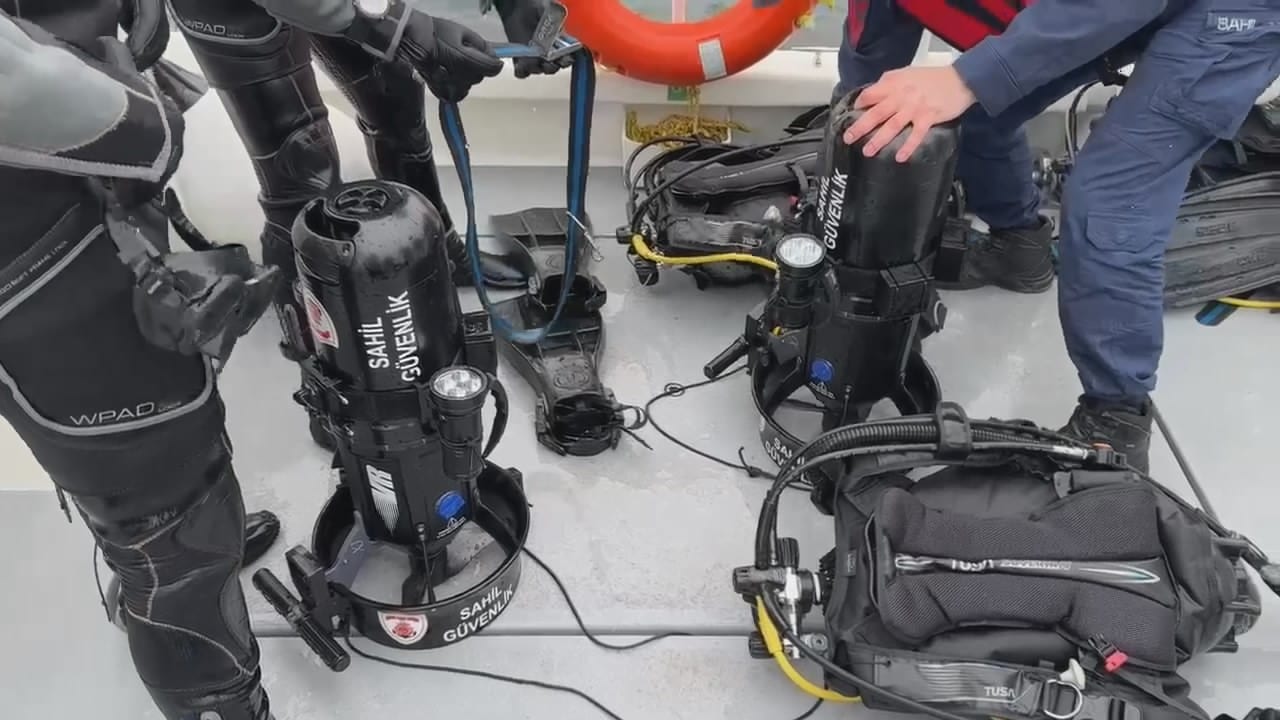Sahil Güvenlik Komutanlığı’na bağlı dalgıçlar midye çiftliğine dalış gerçekleştirdi. Üst kısmından dubalarla bağlı olan ve 20 metre derinliğe kadar inen halatlarla dolu midye çiftliği, herhangi bir cansız bedenin takılma ihtimaline karşı dalgıçlarla kontrol ediliyor.
