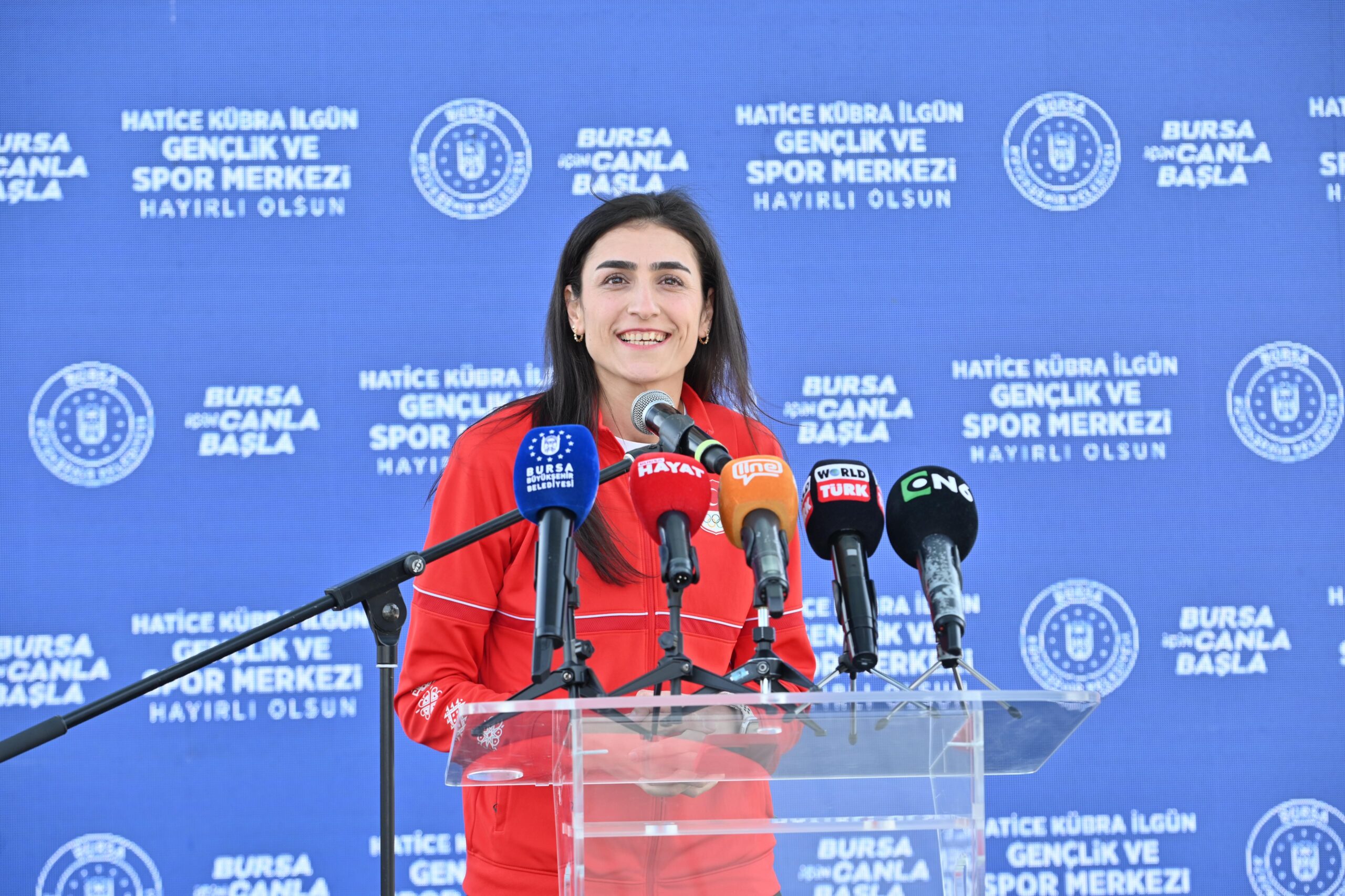 Bursa’ya ilk olimpiyat madalyasını getiren milli tekvandocusu Hatice Kübra İlgün, adının çok kıymetli bir tesiste yaşatılacak olmasından dolayı büyük mutluluk duyduğunu dile getirdi. Konuşması sırasında gözyaşlarını tutamayan milli sporcu İlgün, “Başarılarımın böyle bir tesiste yaşatılacak olması, arkamda bir eser bırakmış olmak benim için gurur verici. Elbette ben tek başıma değilim. Beni her zaman destekleyen aileme teşekkür ediyorum. 18 senedir beni bu sporda sonuna kadar destekleyen ve arkamda duran, bu seviyeye gelmeme yardım eden antrenörüm Fikret Temoçin’e teşekkür ediyorum. 2009’da babamı kaybettim. Baba yarılarıma, amca yarılarıma, herkese teşekkür ediyorum. Buraya adımın verilmesine vesile başta Gençlik ve Spor Bakanlığı’na, Büyükşehir Belediye Başkanımız Alinur Aktaş’a, kulüp başkanımız Gökhan Dinçer’e, il müdürüne, kulüp müdürüne, beni dualarıyla destekleyen Bursalılara teşekkür ediyorum. İnşallah bu salondan nice olimpiyat, Avrupa ve dünya şampiyonları çıkacak. 2024 Paris Olimpiyatları’nda tüm gücümle savaşıp altın madalyayı Bursa’ya getirerek tekrar tarihe geçmek istiyorum” dedi.