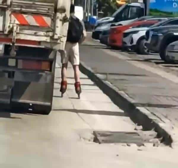 Çevre yolu Demirtaş mevkiinde kaskı ve korumalığı olmayan genç, anayolda seyir halindeki 31 SA 770 plakalı kamyonun yan kısmına tutundu. Anayol olmasına rağmen ilerlemeye devam eden gencin tehlikeli yolculuğu başka bir sürücü tarafından cep telefonuyla kaydedildi.